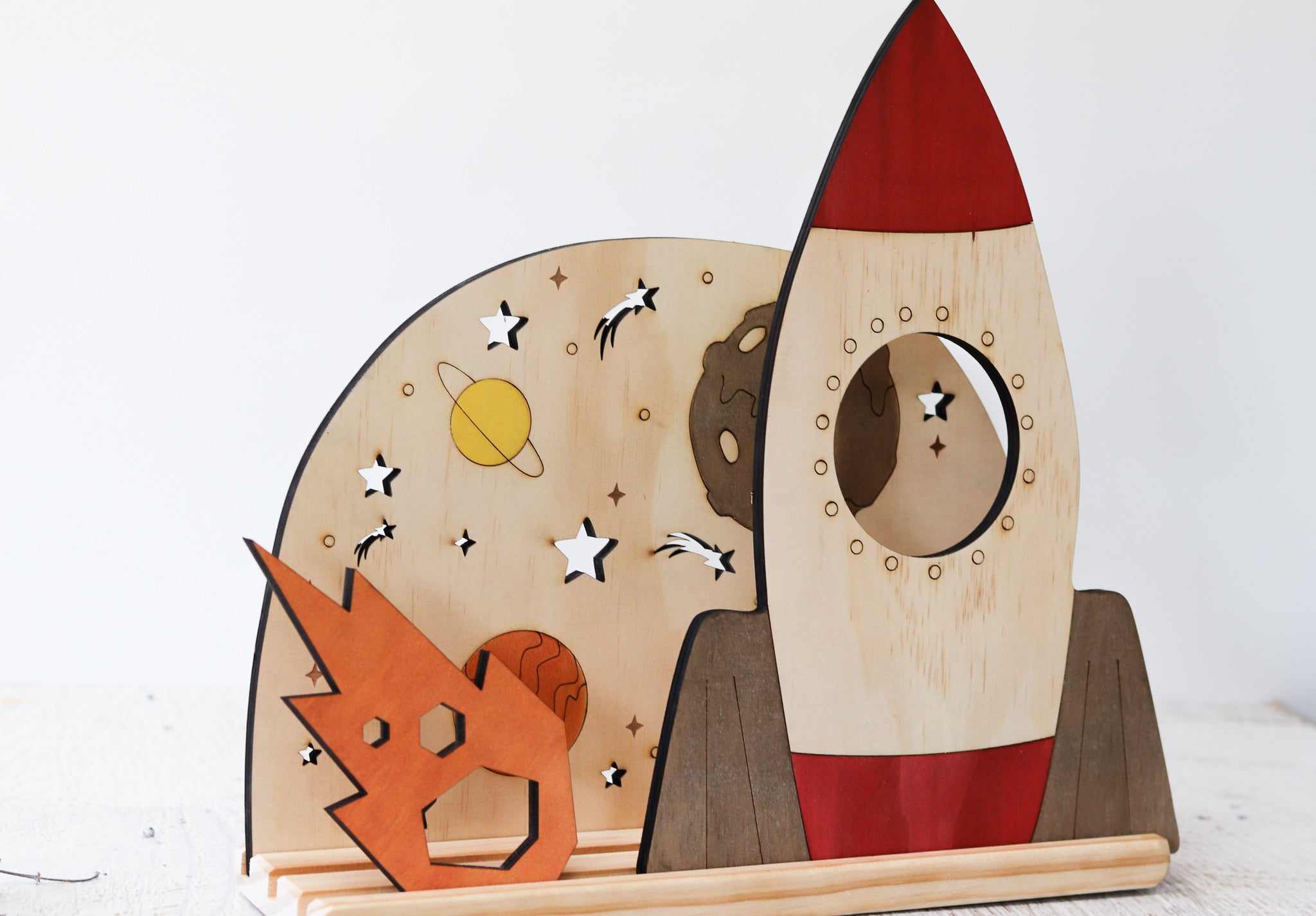 Each StoryScene piece is individually made from natural and sustainable FSC certified New Zealand pine plywood and the unique wood grains will vary between each piece. We believe that this adds to the character and shows the true beauty of natural wood.  Each piece has been dyed by hand using Eco wooden dyes. Colours may appear slightly different from photos due to variations in lighting and the natural nature of how different wood grains absorb colour.